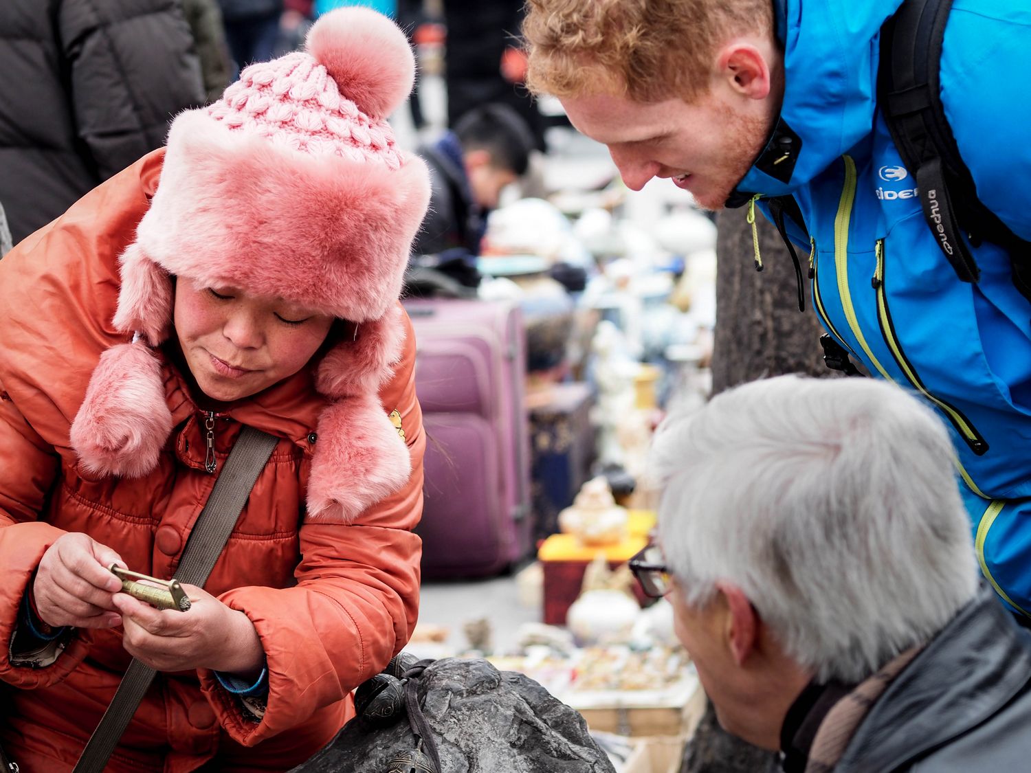 Pourtant, lorsqu’il s’approche, je comprends à son air ravi qu’il n’est absolument pas déçu de sa matinée, et j’en ai la confirmation lorsqu’il nous raconte avec enthousiasme comment il a échappé à une tentative d’extorsion ici ou comment il a réussi à faire baisser un prix de plus de 80% là-bas ! Quand je lui demande pourquoi il n’a finalement rien acheté, il me dit simplement : « Bah parce que je ne voulais rien ! ». Il me fait penser à ces pêcheurs qui rejettent leurs poissons à l’eau à mesure qu’ils les attrapent, juste pour le plaisir du sport (on pourrait discuter ici de savoir si la pêche est effectivement un sport mais c’est un autre débat).