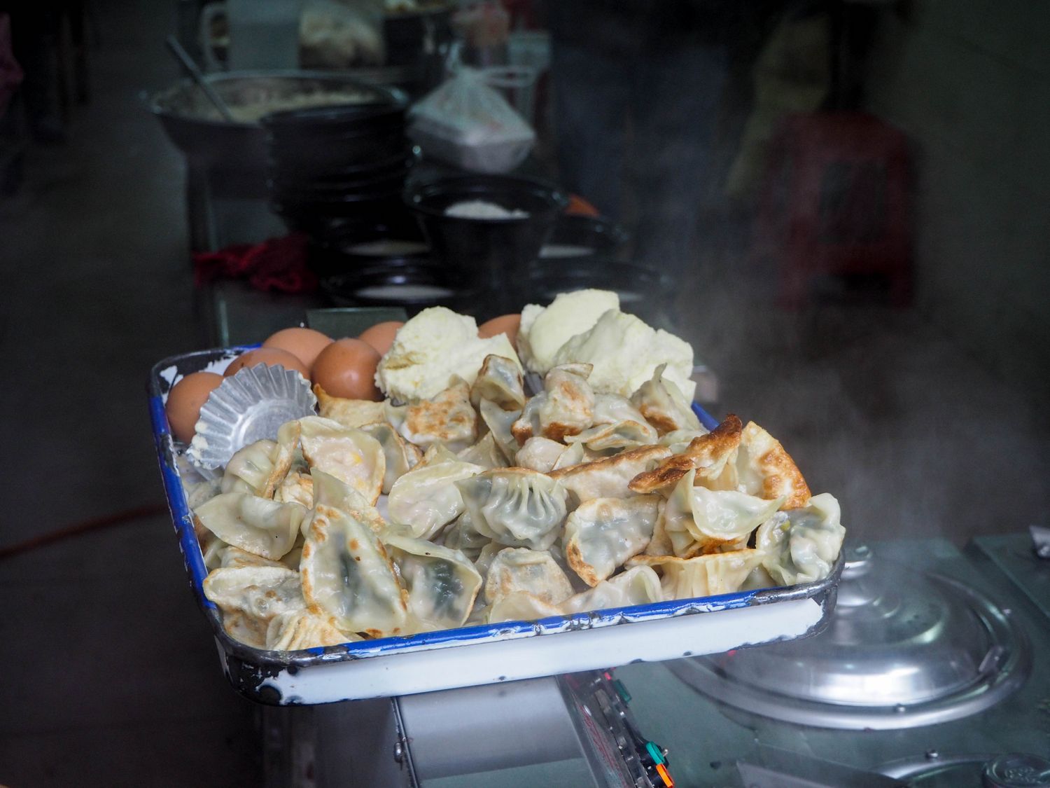 Régénérés par la lumière chaude, nous parcourons gaiement les ruelles de la ville, déjà animées aux premières heures du jour. Le long des trottoirs, les étals de raviolis fumants diffusent une odeur alléchante. Installés sur de petits tabourets en plastique, les chinois avalent ces bouchées brûlantes ou aspirent leurs nouilles avec grand bruit. Plus loin, le marché aux épices et plantes médicinales rassemble racines de gingembre, peaux de lézard séchées, épices de toutes sortes, dans un festival de parfums plus ou moins heureux. Au terme de notre ballade, nous atteignons les berges de l’impressionnante « rivière de perles », large de plusieurs centaines de mètres, d’où nous apercevons l’architecture futuriste de la ville moderne.
