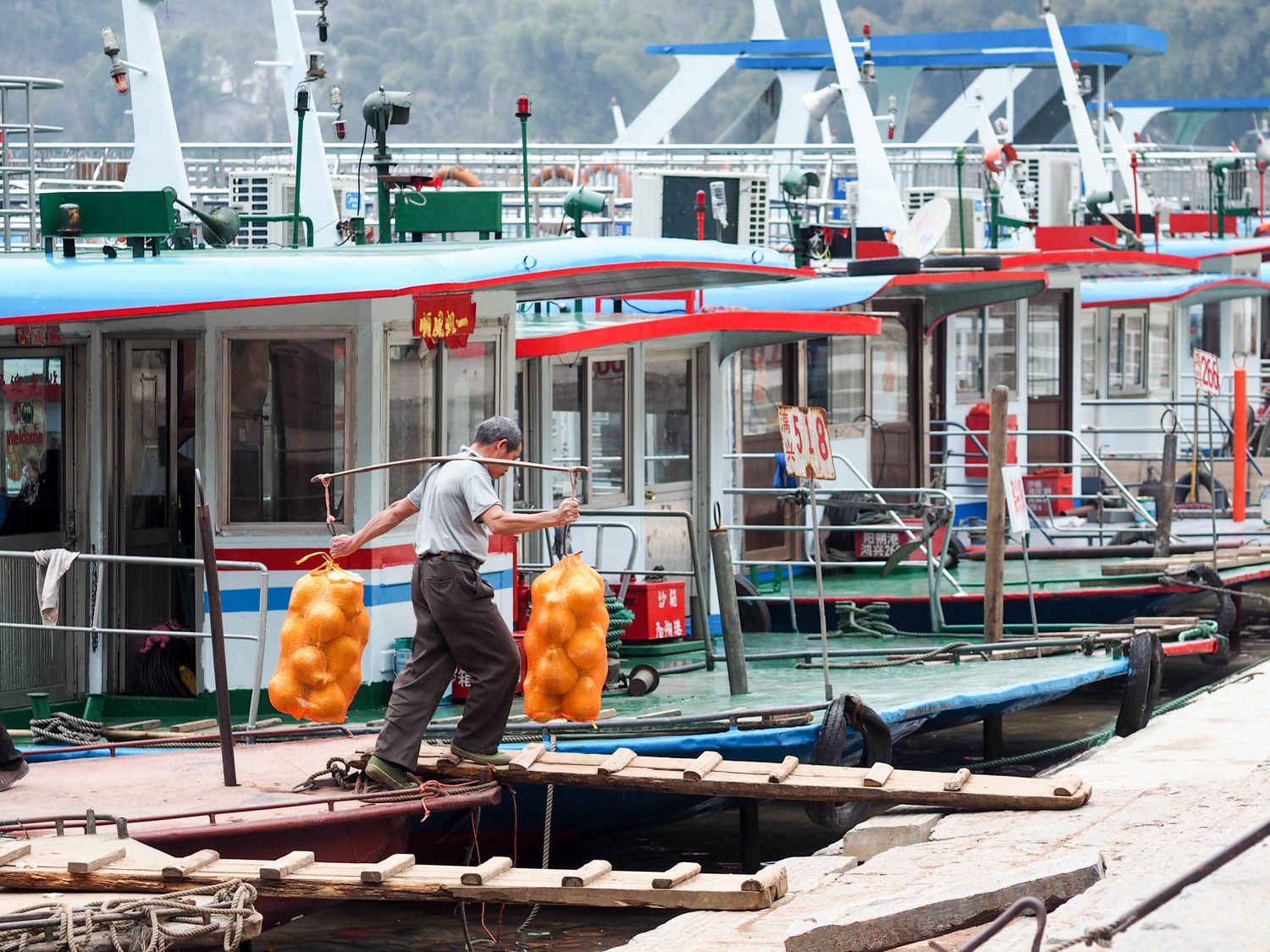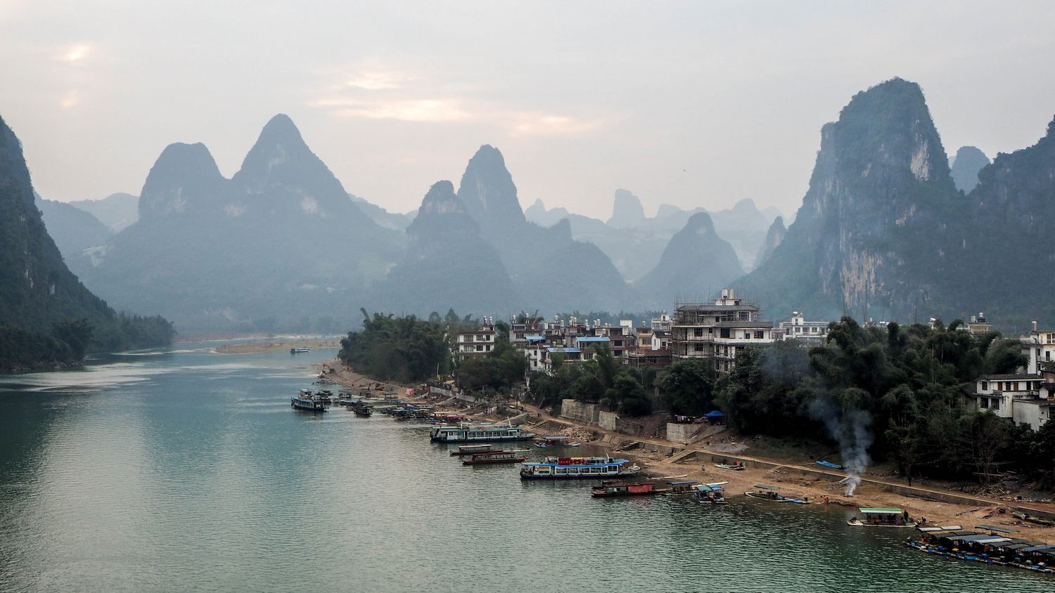 Nous nous installons dans une auberge de jeunesse de la petite ville de Yangshuo. Sans charme, ses rues rassemblent échoppes de souvenirs, magiciens ambulants et autres aimants à touristes. Nous partons dès le lendemain à moto à la découverte de la campagne chinoise environnante. Bien vite, les boutiques de souvenirs laissent place à des paysages idylliques. Des heures durant, nous parcourons les chemins de terre bordés de prairies et de plantations, traversons de paisibles petits villages, puis nous longeons les bords de la rivière Yulong, entourés de pics rocheux massifs. Le soleil éclaire la campagne d’une lumière délicate, et l’air encore frais de cette fin d’hiver qui se faufile sous nos vêtements nous fait doucement frissonner. A travers les prairies verdoyantes, ou près de petits moulins à eau, nous prenons le pouls de la vie rurale chinoise. Les paysans s’échinent dans les plantations le dos courbé, ou font paître leurs buffles d’eau dans les rizières inondées. Une Chine paisible et authentique, qui offre au sortir de l’hiver des couleurs douces, joliment passées, à la manière d’une aquarelle.