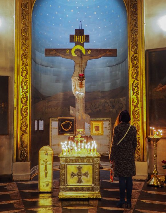 A chaque coin de rue se dresse une église richement ornée, pourvue de dômes resplendissants, un palais centenaire aux façades illuminées, un canal dont l’eau reflète les lumières de la ville les transformant en une nuée de pièces d’or.
