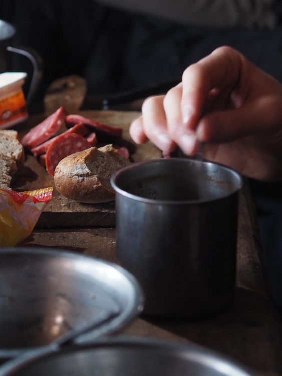 Alors que nous mettons toute notre énergie à nous relever de nos innombrables chutes, qui rendent notre progression laborieuse, Anton est déjà loin. Régulièrement, toutes les heures peut-être, nous l’apercevons enfin, assis sur un tronc, sa thermos de thé à la main, l’air las. Alors que nous nous approchons enfin, au fil de lentes glissades sur le chemin, le voilà qui se relève déjà et repart de plus belle. Après quatre heures de ski, la nuit se met à tomber, nous contraignant à nous munir de nos lampes frontales pour continuer notre route. Nous n’avons pas mangé depuis 11h du matin et nos jambes commencent à flancher. Les dernières centaines de mètres semblent interminables.